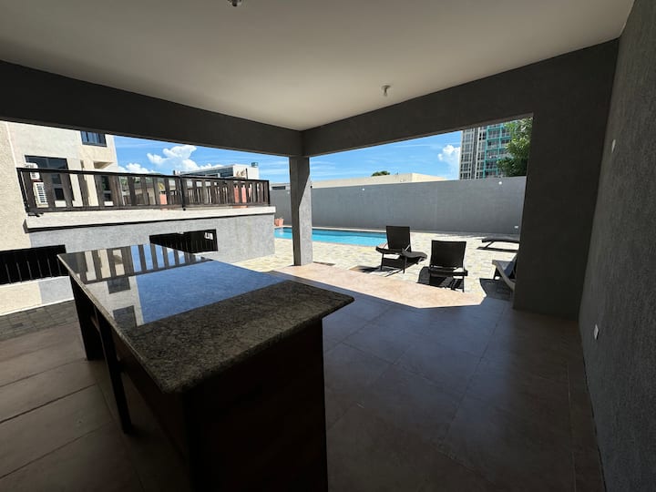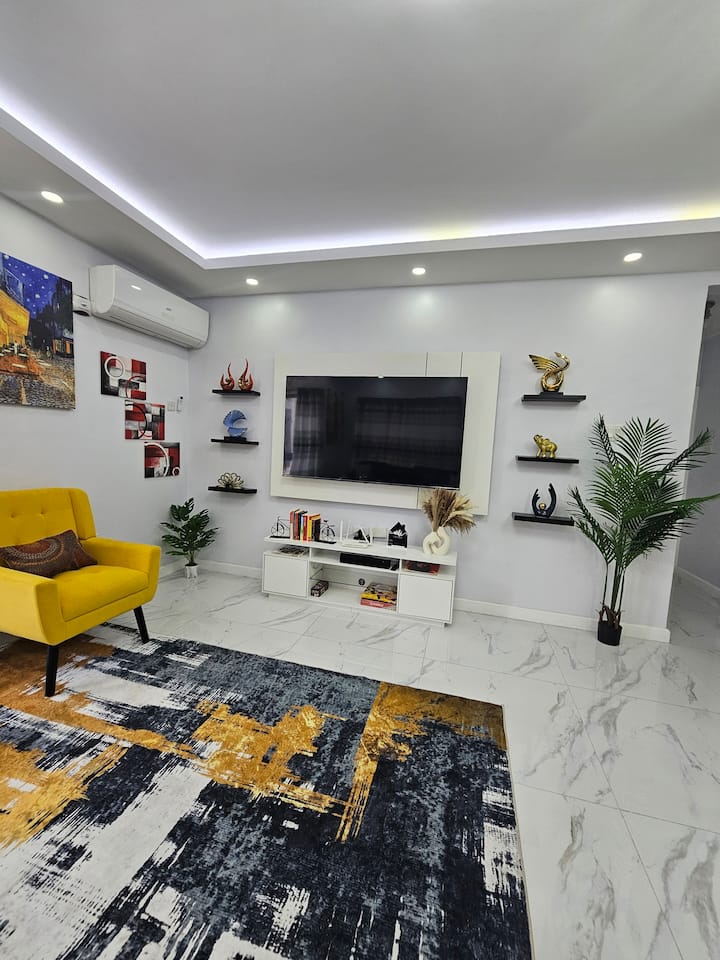 Stan ima visoke stropove i keramičke podove. Potpuno je klimatiziran, osiguran 24-satnom zaštitom i nadzorom kamera u zajedničkim prostorijama. Uživajte u besplatnom Wi-Fi-ju, toploj vodi i besplatnom podzemnom parkiralištu (s parkiralištem za osobe s invaliditetom na gornjem katu).