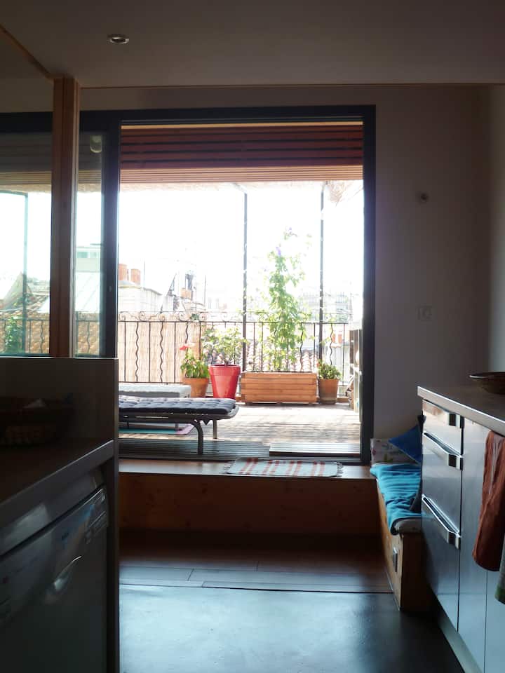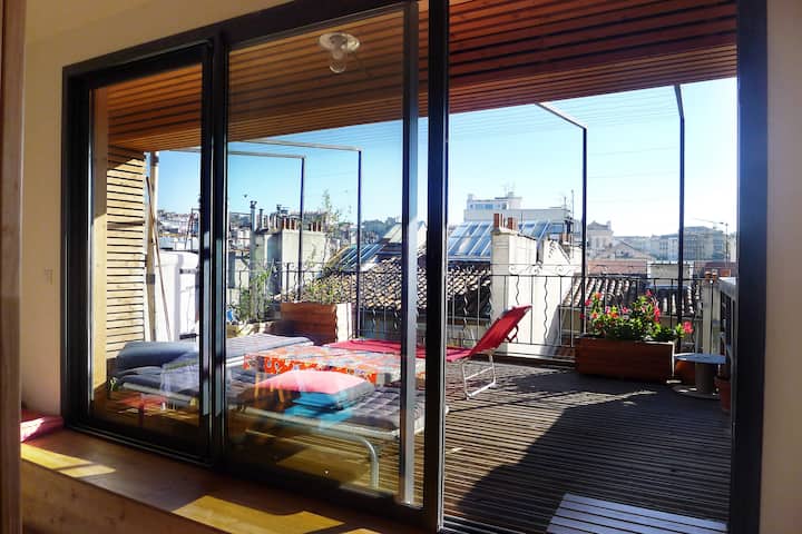 T2 na dvorištu s terasom s biljem u središtu grada