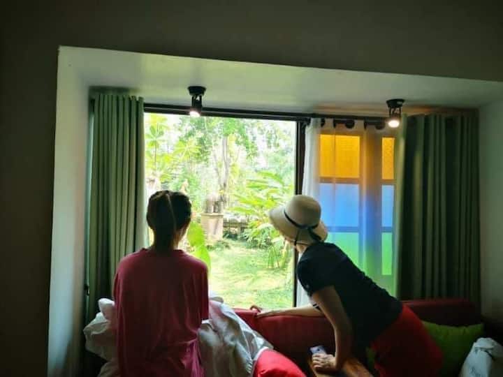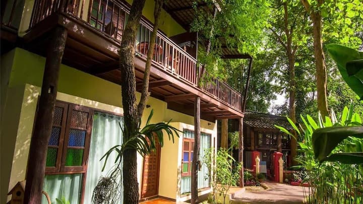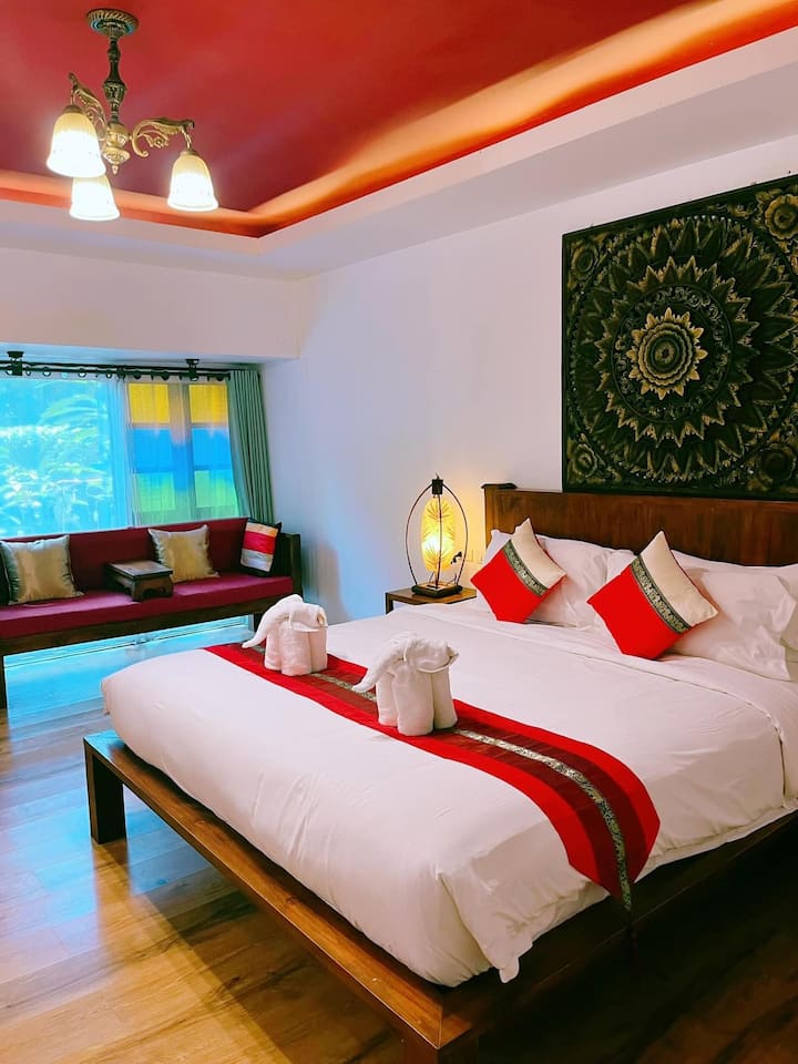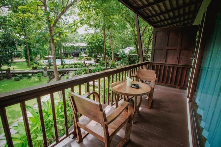 Soba s velikim krevetom s pogledom na tropsku prašumu u Chiang Maju
