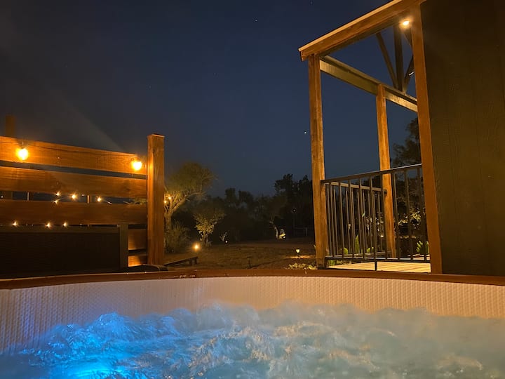 U kuhinji se nalazi otvoreni dnevni boravak s kojeg se pruža veličanstven pogled na krajolik središnjeg Teksasa. Veliki prozori s francuskim prozorima donose ulaz na otvorenom, preplavljujući ukusno uređen rustikalno luksuzan interijer s toplim prirodnim svjetlom. The Living Area is complete with a large 55” Smart TV for streaming Netflix and a variety of online platforms. Cijeli prostor od 1/2 jutra opremljen je brzim internetskim pristupom.