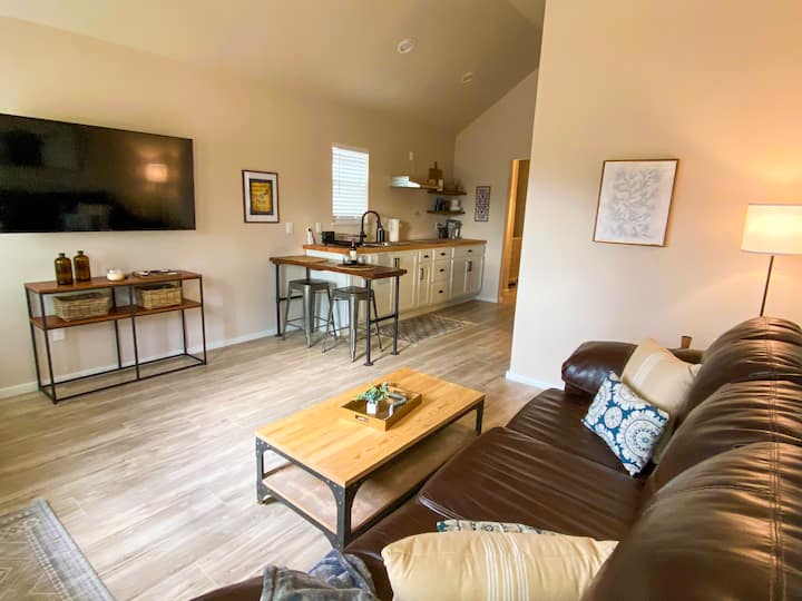 Kupaonica ima veliku modernu tuš-kabinu. Kuhinja ima hladnjak veličine brvnare, zamrzivač i prilagođene prednje strane koje se mogu uklopiti s bijelim hrastovim vratima i ladicama, toster i mikrovalnu pećnicu Hampton Bay te spektakularne ručno izrađene pultove Butcher Block. U kuhinji se nalazi moderan štednjak s 2 plamenika i asortiman s aparatom za kavu Keurig.