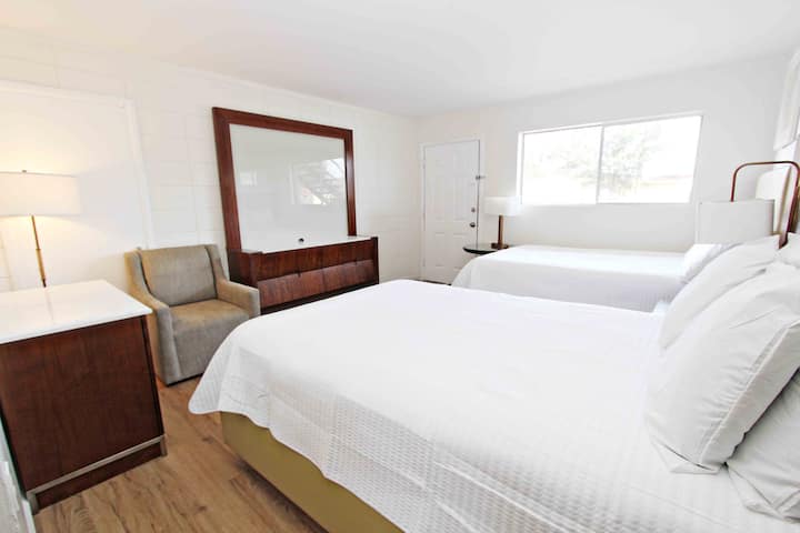 Dobro došli u Cannon Inn, hotel s 54 stambene jedinice u Gonzalesu (Teksas). Ova udobna soba ima dnevni boravak s dva bračna kreveta za 4 gosta, radni stol, besplatan parking i Wi-Fi u sklopu objekta.