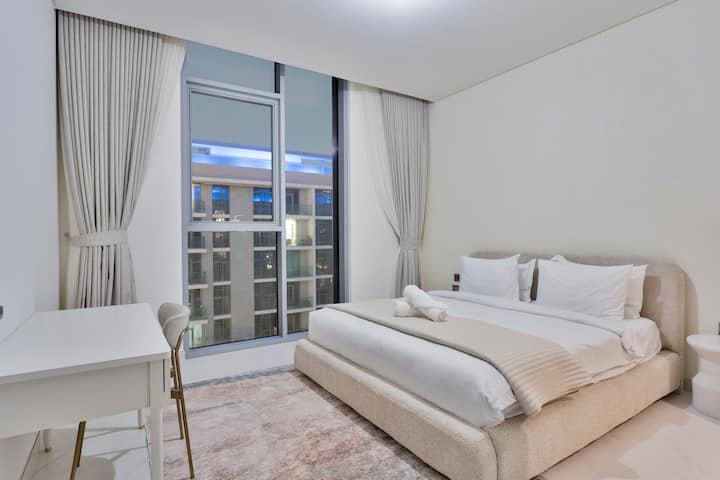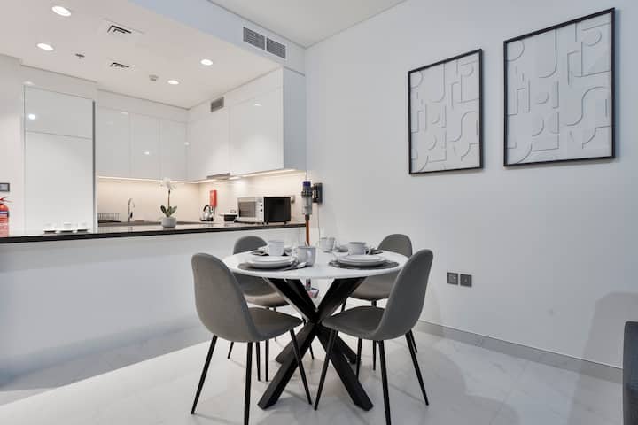 Probudite se uz prekrasan pogled na Burj Khalifu sa svog privatnog balkona 🌆 i opustite se pored mirnog bazena🏊♂️. Ovaj elegantni, moderni stan može se pohvaliti ☀️velikim prozorima koji prostor ispunjavaju prirodnim svjetlom. Uživajte u vrhunskim sadržajima, živopisnoj četvrti i kulturi🎭. Čeka vas savršen odmor u gradu - rezervirajte odmah!