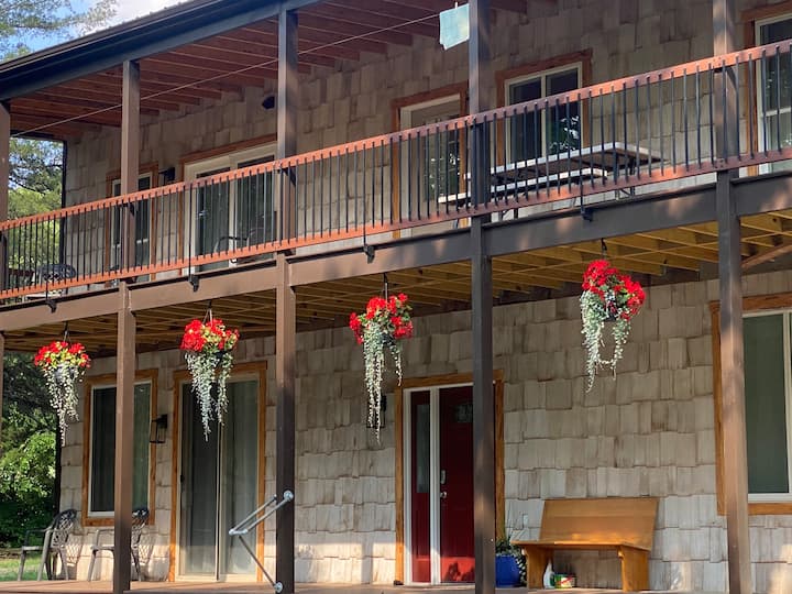 Gosti se mogu koristiti cijelim prvim i drugim katom Cedar Spring Oasis; bilo kojim ulazom koji nije zaključan ili na drugi način naveden, uključujući zajednički prostor na gornjoj etaži, gornju i donju palubu, košarkaško igralište/igralište za pickleball i područje s potokom/ pašnjakom.