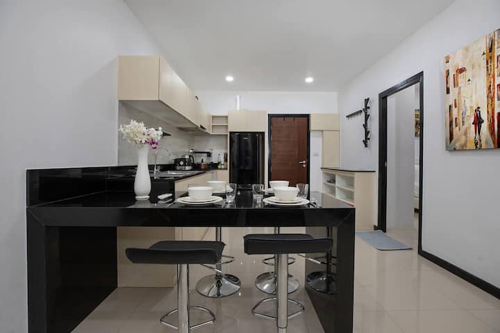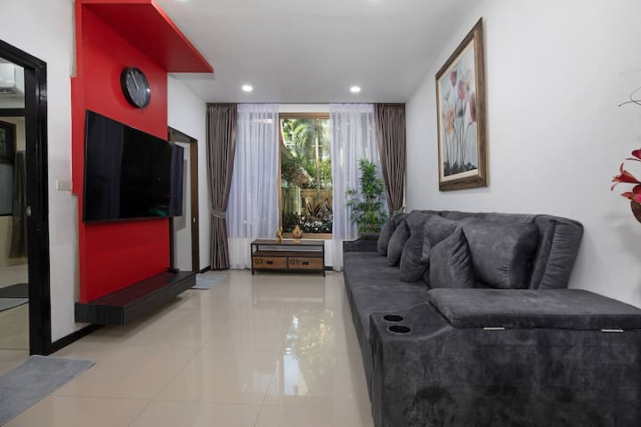 Ovaj fantastičan dvosobni stan u prizemlju koji se nalazi u kondominiju Nai Harn udaljen je samo 3 minute vožnje od prekrasne plaže Nai Harn i samo 2 min od Saiyuan Roada. The Apartment offers access to 3 pool areas. Dvije spavaće sobe svaka s izravnim pristupom kupaonici, opremljena kuhinja, prostorija za fitness, brzi Wi-Fi s TV-om sa zaslonom od 65 inča, mini-martom i masažama na udaljenosti od 1 min hoda. To je idealna lokacija za obiteljski odmor, odmor s prijateljima ili rad od kuće