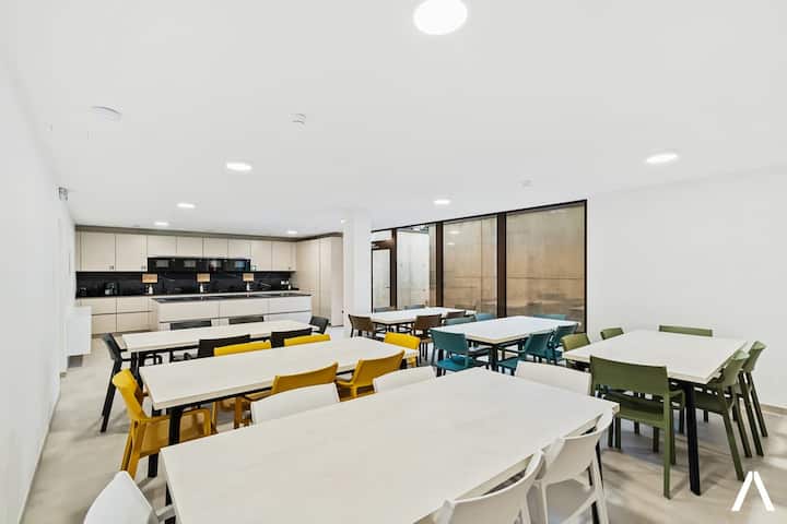 Udobna soba u blizini Cloche d'Or s bračnim krevetom, bežičnim internetom i prostorom za rad. Uživajte u privatnom balkonu s garniturom za sjedenje, mini-hladnjakom, aparatom za kavu i kuhalom za vodu. Pristupite potpuno opremljenoj zajedničkoj kuhinji i opustite se u dnevnom boravku uz TV ravnog ekrana. Bonus: igraonica s biljarom, stolnim nogometom, stolnim tenisom i pikadom! U blizini su javni prijevoz, trgovine i restorani za jednostavan pristup svemu što vam je potrebno.