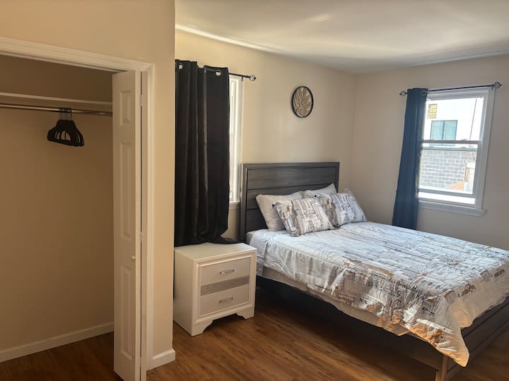 Odsjednite u udobnosti i stilu u ovom novouređenom stanu, savršeno smještenom samo pola bloka od središnje trgovačke četvrti West New Yorka i javnog prijevoza do New Yorka. Budući da je autobusna stanica na pješačkoj udaljenosti, možete biti na Times Squareu za samo 15 – 20 minuta i uživati u svim uzbuđenjima Manhattana dok boravite u mirnoj i praktičnoj četvrti.