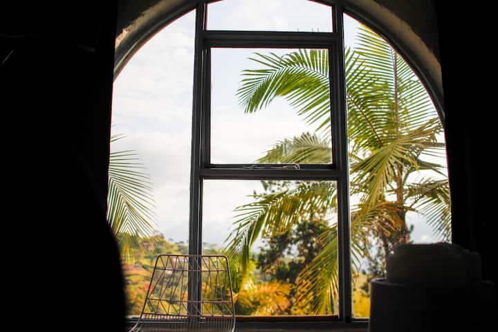 Koliba Tucán s balkonom u maglovitoj šumi