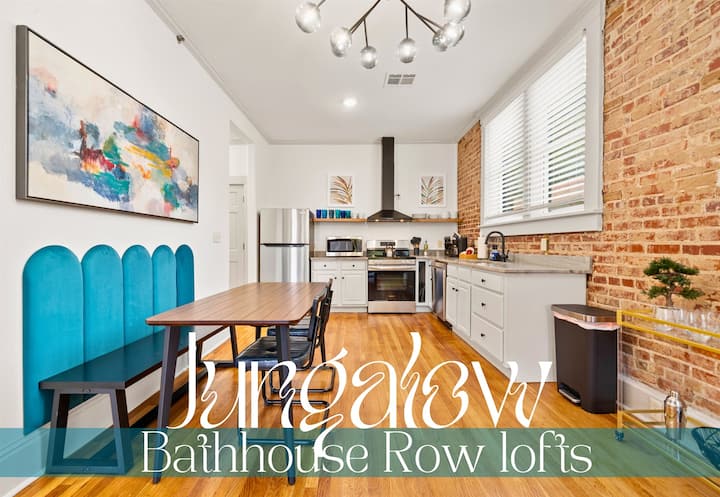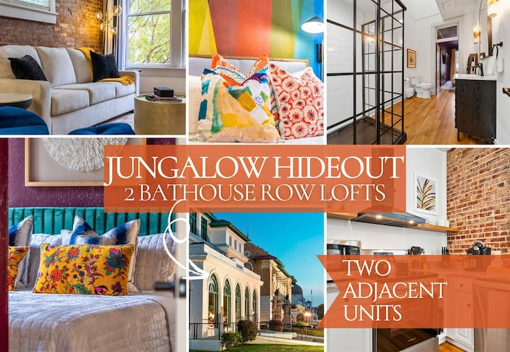 Otkrijte savršen spoj šarma, udobnosti i praktičnosti u četvrti Jungalow Hideout, par loftova koji se nalaze jedan pored drugog u srcu Hot Springsa. Dizajnirana s odvažnim dekorom i pažljivo osmišljenim sadržajima, ova dva živopisna prostora pružaju nezaboravan boravak parovima, malim grupama ili putnicima koji putuju sami. Smješten samo nekoliko koraka od Bathhouse Rowa, Jungalow Hideout je vaš ulaz u najbolje od grada.