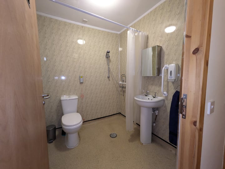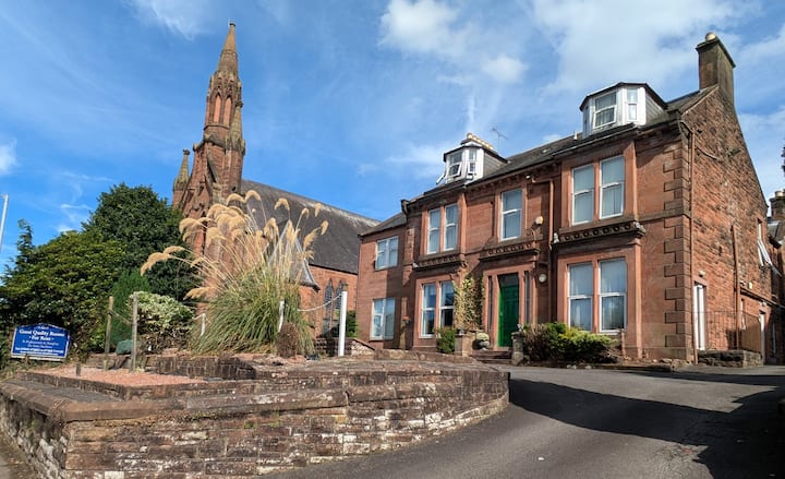 Dvokrevetne sobe s kupaonicom, s ogromnim zajedničkim kuhinjama. Velika kuća u nizu, na nekoliko minuta hoda od središta Dumfriesa, na istoj strani grada kao i bolnica. Veliko privatno parkiralište. Autobusna stanica na pragu. Kuhinje se dijele s dugoročnim podstanarima (mirni poslovni ljudi, uglavnom iz NHS-a). Sve su sobe slične onima na fotografijama (slični ukrasi i veličine) te su tople i udobne. TV i besplatan Wi-Fi. Tu su radni stol i stolica te namještaj u spavaćoj sobi. Ogromni popusti za dugoročne rezervacije.