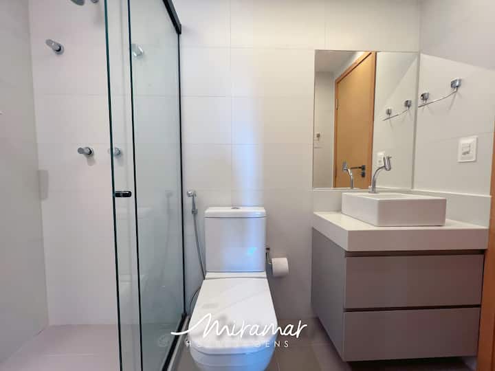 Uz savršenu atmosferu za opuštanje, stan nudi pristupačan balkon svih soba, pružajući posebnu notu iskustvu. S dvije udobne spavaće sobe, privatnim apartmanom, dnevnim boravkom, kuhinjom i dvije kupaonice, mjesto nudi mir koji tražite nakon cjelodnevnog istraživanja João Pessoa. Klima-uređaj u objema sobama osigurava osvježavajuće noći. Dnevni boravak, opremljen kaučem na razvlačenje, može primiti do dva dodatna gosta, što omogućuje maksimalno udobnost do 6 osoba.