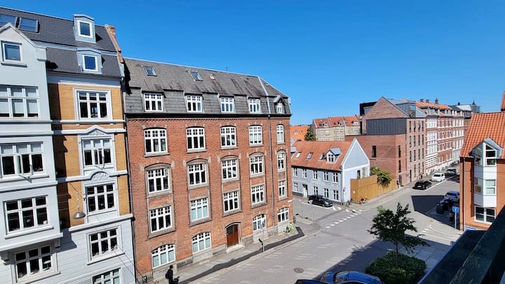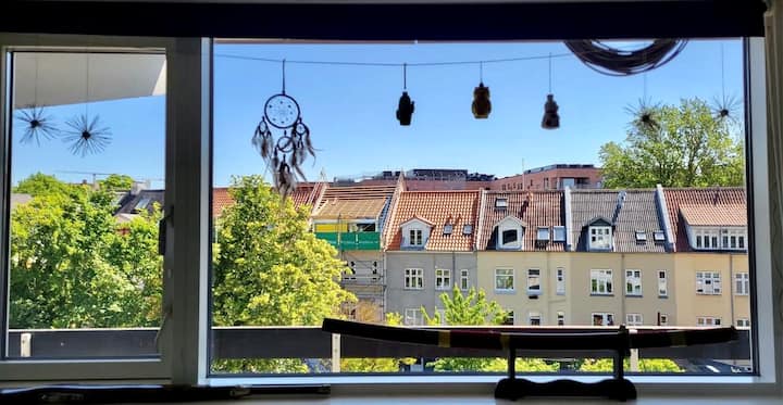 Svijetle, prostrane i ispunjene svjetlošću – četiri lijepe sobe s velikim prozorima i mirnom, ugodnom atmosferom. Okružena kafićima, tržnicama i ulicama s drvoredima, ova četvrt ima pravi šarm Aarhusa. Ovdje živim već 15 godina i jako sam zadovoljna, a nadam se da ćete biti i vi!
