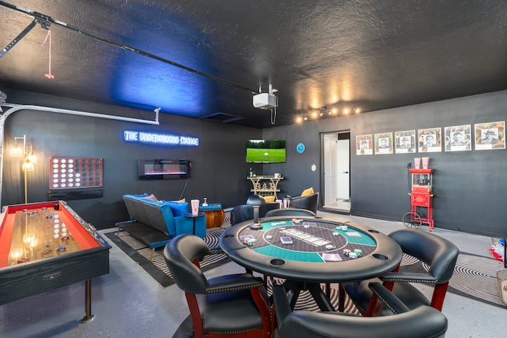 Smještaj u stilu Velikog Gatsbyja s grijanim bazenom, masažnom kadom, igraonicom i dizajnom vrijednim objave na Instagramu!