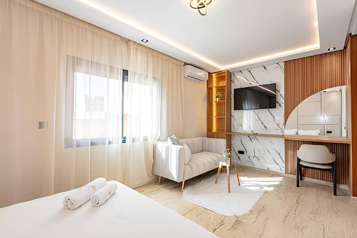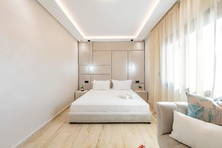 Idealno smješten u Guelizu u srcu Marakeša, ovaj novi stan u potpunosti renoviran 2024. godine u modernom i udobnom stilu može primiti do 4 gosta.