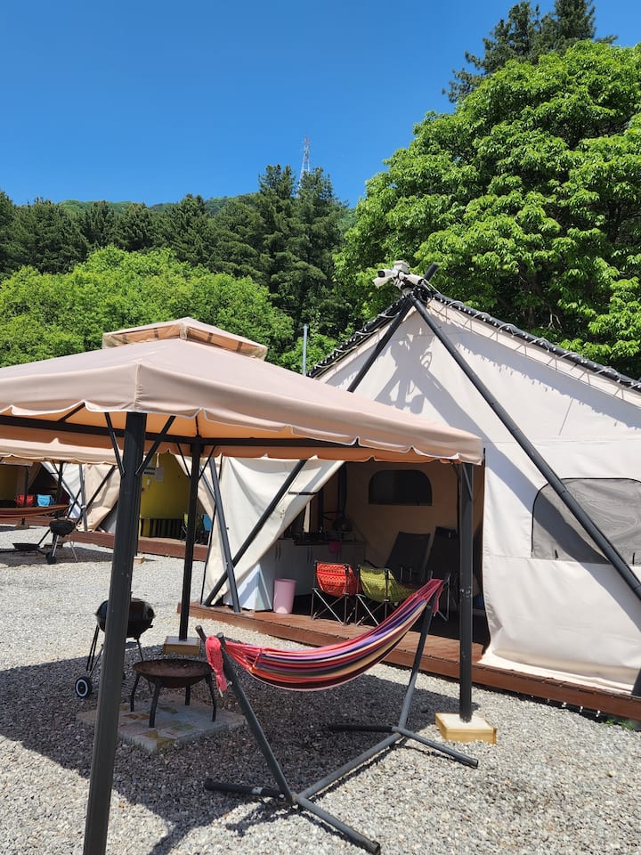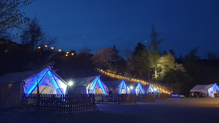45 minuta autobusom od izlaza 5 stanice Jamsil, prirodni odmaralište s pogledom na planinu, restoran! Glaming i kampiranje u vrtu pod mjesečinom u Gapyeongu