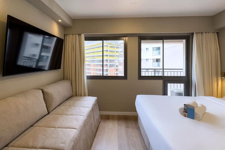 New studio in Brooklin, 900 m from the US Consulate, close to MorumBIS Stadium (former Morumbi) and Interlagos.