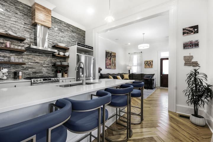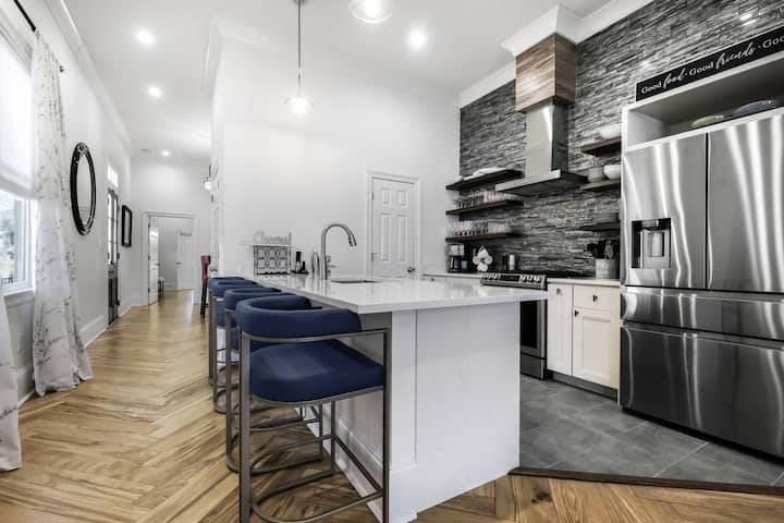 Uživajte u živopisnom šarmu New Orleansa iz udobnosti smještaja Franklin Manor, prekrasno obnovljenog objekta s 3 spavaće sobe i 3,5 kupaonice u samom srcu četvrti Marigny. Ovaj prostrani smještaj idealno je smješten na udaljenosti od samo 2,4 km od Francuske četvrti i stadiona Superdome te se nalazi nekoliko koraka od tramvaja, pa ćete lako moći otići do centra grada, parka City Park i sajmišta (udaljenog 1,9 km). Bilo da ste ovdje zbog kulture, gastronomije ili noćnog života, bit ćete okruženi kultnim restoranima, živahnim barovima, muzejima i lokalnim draguljima zbog kojih je New Orleans nezaboravan.