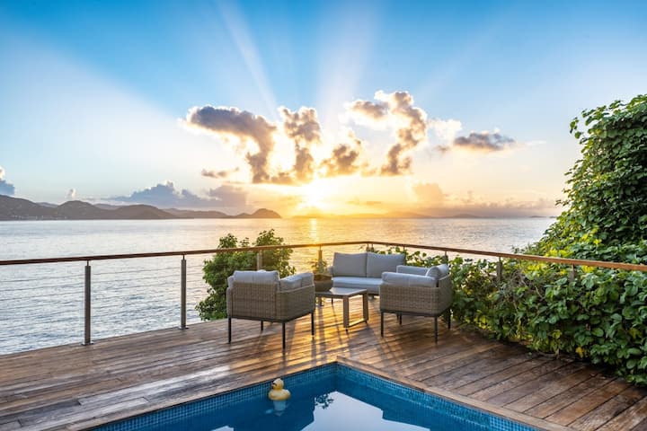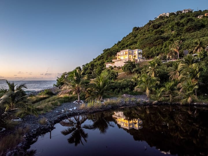 Dobro došli u našu ekskluzivnu vilu uz obalu, Cannon Point Estate, izgrađenu 2022. godine kao naš obiteljski dom. Smješten na 1,5 hektara uz privatnu cestu sa samo jednim susjedom, nudi nenadmašnu osami i pogled na ocean koji oduzima dah. S 25 metara privatne obale možete zakoračiti izravno u more i plivati, veslati ili surfati. Unatoč mirnom okruženju, udaljeni ste samo pet minuta hoda od živahne plaže Cane Garden Baya, sa svojim restoranima, barovima i dvije zadivljujuće zlatne plaže.