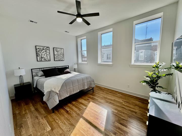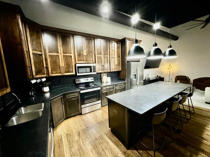 Upravo dovršena 2025. godine, ova 1300sf jedinica nudi sve što vam je potrebno za opuštajući vikend ili posjet povezan s poslom! Naći ćete prilagođenu kuhinju s novim uređajima i svime što vam je potrebno za pripremu ukusnog obroka osim namirnica! Ovo prostrano potkrovlje dizajnirano je imajući na umu otvoreni koncept, s visokim stropovima, izloženim zidovima od cigle i drvenim podovima koji čuvaju povijesni šarm zgrade. Pažljivo uređeni ukrasi daju toplinu i karakter, pa se gosti osjećaju kao kod kuće.