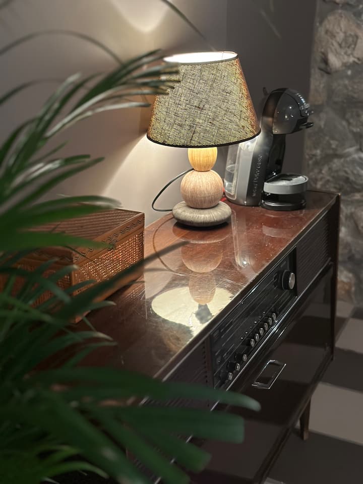 Soba je opremljena aparatom za kavu, kuhalom za vodu, šećerom, medom i planinskim čajem, što vam omogućuje da uživate u kavi ili čaju u bilo koje doba dana. Goste dočekuje tradicionalna grčka žlica koja im pruža okus lokalnog gostoprimstva.