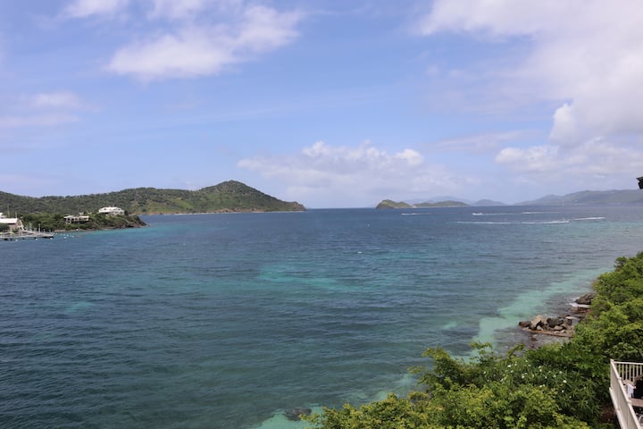 Ova prekrasna vila s jednim spavaćim sobom i pogledom na ocean s besplatnim Wi-Fi mrežom od 100 Mb udaljena je samo nekoliko koraka od plaže Sugar Beach i potpuno je obnovljena. Renovirana, potpuno opremljena kuhinja ima sve što će vam biti potrebno tijekom boravka. Iz prostranog dnevnog boravka pruža se prekrasan pogled na otok i more. Uživajte i u pogledu iz spavaće sobe s velikim bračnim krevetom i renovirane kupaonice. Ova vila je vrlo blizu bazena na obali. Bazen na vrhu brda nalazi se na vrhu brda na kojem se nalazi odmaralište. Parkiralište je odmah ispred vile.