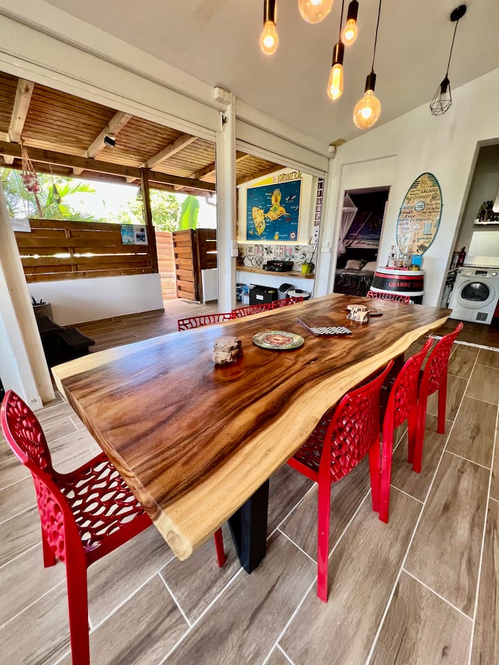Rajske plaže, suosjećanje Guadeloupeana, bogatstvo kulture i njezinih krajolika zaveli su me, a posjet ovog dupleksa arhitekta me uvjerio! Nakon 2 tjedna iznajmljivanja odlučio sam dati ponudu vlasniku koji je bio kupac i pristao mi dati svoj mali komadić raja koji vam danas nudim za iznajmljivanje.