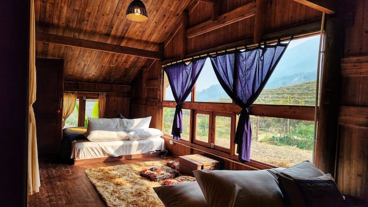 Probudite se uz predivan pogled 🌾 na najljepše rižine terase u Tả Vanu. Vaš je domaćin žena iz plemena Dáy u 60-ima, bivša kuharica u hotelu s 5 zvjezdica 👩🍳 koja voli dijeliti svoju lokalnu kulturu i domaće jelo🍲.