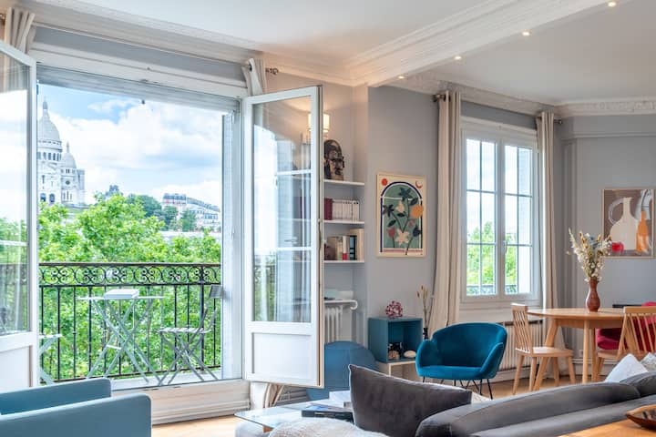 Dođite i uživajte u pravom pariškom iskustvu u našem šarmantnom stanu, sa spektakularnim pogledom na Sacré-Cœur i uređenjem kao s razglednice.