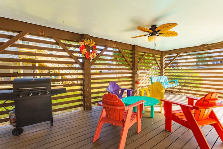 Home Sweet Helga šarmantna je kuća s 3 spavaće sobe i 2 kupaonice u Kill Devil Hillsu, samo nekoliko minuta od oceana i zaljeva. Opustite se u otvorenom prostoru za boravak, uživajte u glavnoj spavaćoj sobi s bračnim krevetom i privatnim izlazom na terasu te uživajte u obrocima u blagovaonici ispod kuće s plinskim roštiljem. Nakon kratke vožnje do plaže Helga Street možete se osvježiti pod vanjskim tušem. Ovaj smještaj savršen je za odmor na Outer Banksu jer su u blizini trgovine, restorani i lokalne znamenitosti, a i psi su dobrodošli.