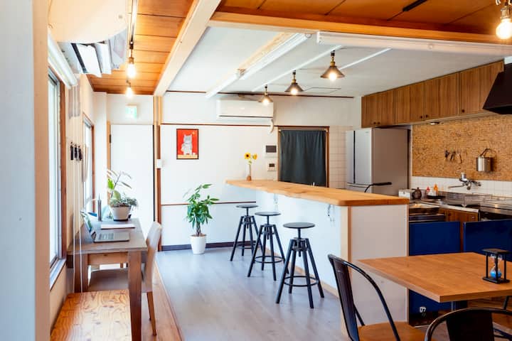 The guesthouse "Denim Lodge Nest" has a 8-tatami mat Japanese-style room on the first floor.