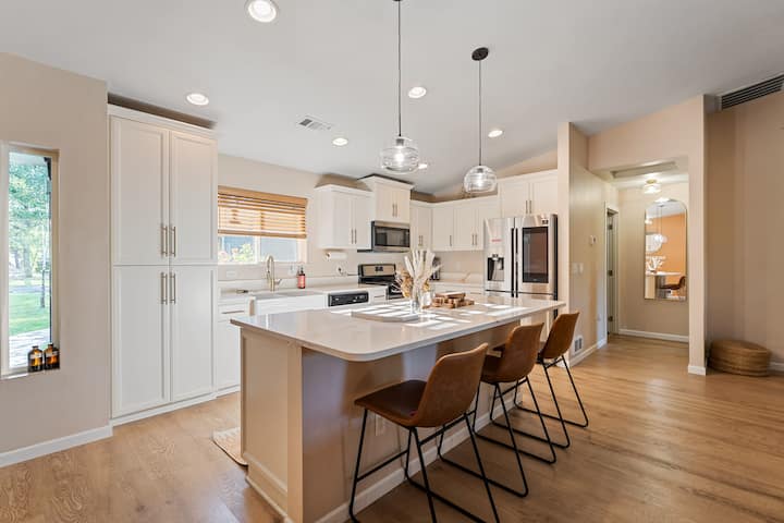 Dobro došli u moderno utočište uz rijeku u južnom Oregonu! Plivajte u bistroj rijeci koja je na par koraka od vaših vrata i opustite se u privatnoj masažnoj kadi pod zvijezdama. Nekoliko minuta od Oregon Cavesa, Redwoodsa, vinograda i 55 milja od obale. Idealno za obitelji, parove, vlasnike kućnih ljubimaca, ljude koji rade na daljinu i ljubitelje prirode. Doživite savršen spoj prirode i udobnosti.