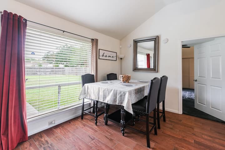 ★》Dobro došli u svoj savršeni drugi dom! Ovaj šarmantni smještaj s 3 spavaće sobe i 2 kupaonice idealan je za obitelji, parove ili poslovne putnike koji traže opuštajući i elegantan smještaj u Dickinsonu. Smješten u mirnoj ulici bez izlaza, ovaj jednokatni smještaj nudi sve što vam je potrebno za nezaboravan boravak.