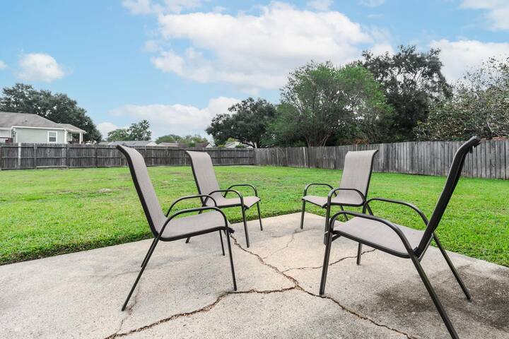Izađite van u veliko privatno dvorište, savršeno za jutarnju kavu ili večernje razgovore. Prostor za sjedenje na terasi pruža mirno mjesto za opuštanje. Kuća uključuje besplatno parkiralište na prilaznom putu za 4 automobila i potpuno ograđeno dvorište za dodatnu privatnost. Unutra se nalazi kamin na drva koji pridonosi ugodnoj atmosferi.