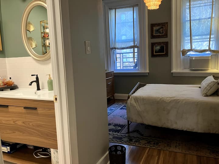 Dvosoban stan s visokim stropom i privatnim dvorištem – 20 min do NYC-a