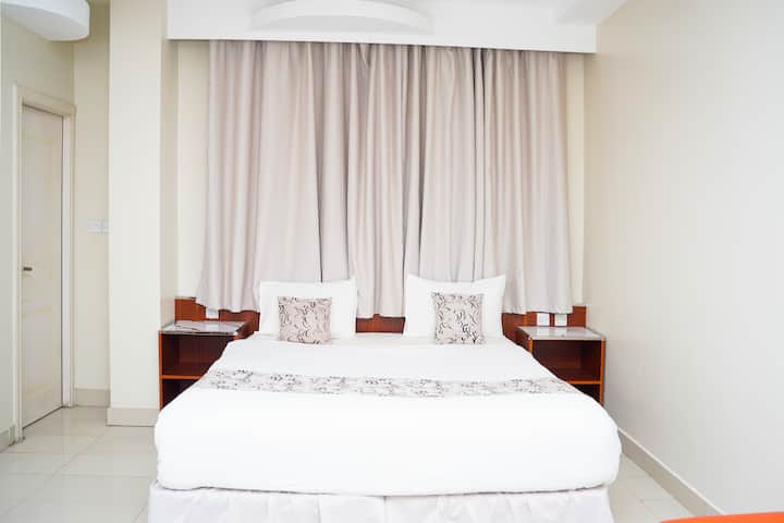 Uživajte u eleganciji ovog luksuznog apartmana s velikim bračnim krevetom, prostranim rasporedom, klima-uređajem, privatnom kupaonicom i besplatnim bežičnim internetom. Savršeno za romantičan odmor ili poslovno putovanje, s udobnim radnim stolom i televizorom s ravnim ekranom. Opuštajte se u stilu, uz jednostavan pristup najboljim znamenitostima Muskata, samo 27 km od međunarodne zračne luke Muscat.