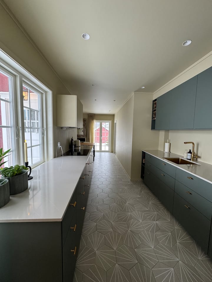 Novouređena lijepa kuhinja s grijanim podovima i vlastitom blagovaonicom. Vrlo dobro opremljena soba. Ovo je sve što vam je potrebno za kuhanje i ugodne trenutke. Kuhinjski aparat, aparat za kavu, toster, Kombi Micro, pećnica, perilica za posuđe i hladnjak sa zamrzivačem.