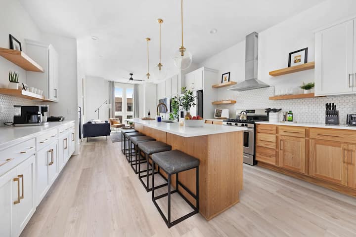 Smješten u živopisnom East Nashvilleu, samo nekoliko minuta od centra grada, ovaj smještaj s 4 spavaće sobe i 4 kupaonice spaja moderan stil s vrhunskom udobnošću. Uživajte u pogledu s terase na krovu s ognjištem, opustite se u prostranom dnevnom boravku otvorenog koncepta i iskoristite brzi internet, radne prostore i potpuno opremljenu kuhinju. Čeka vas nezaboravno iskustvo!