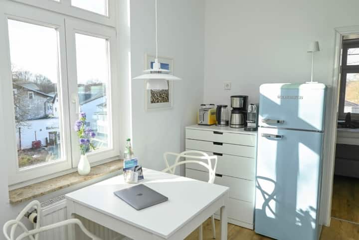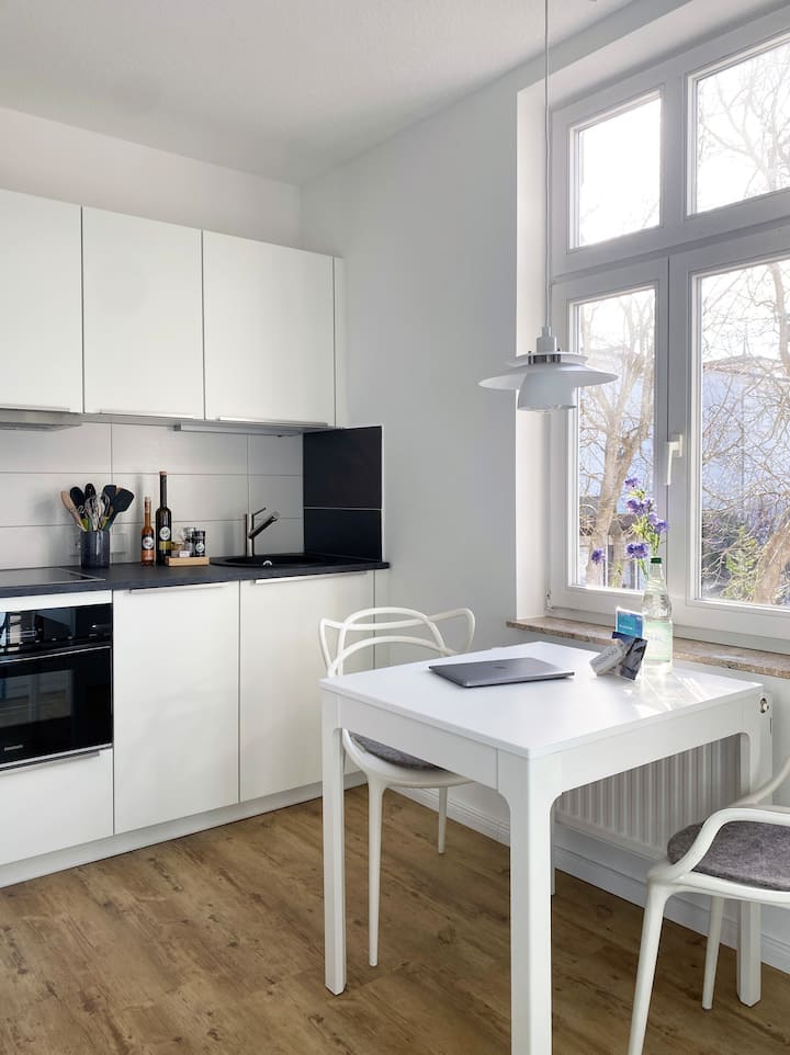 Bijela pješčana plaža Baltičkog mora i šetnica udaljeni su samo 5 minuta hoda. The idilic village center of Binz, the traffic-calmed pedestrian zone with cozy street cafes, white bath villas and diverse restaurants is less than 200 m from our apartment. Željeznička stanica DB Ostseebad Binz (1100 m) i Rügensche Bäder-Bahn "Rasender Roland" (700 m) također su na pješačkoj udaljenosti i do njih možete doći za nekoliko minuta. Iz apartmana možete započeti prekrasne pješačke i biciklističke ture u okolnu prirodu.