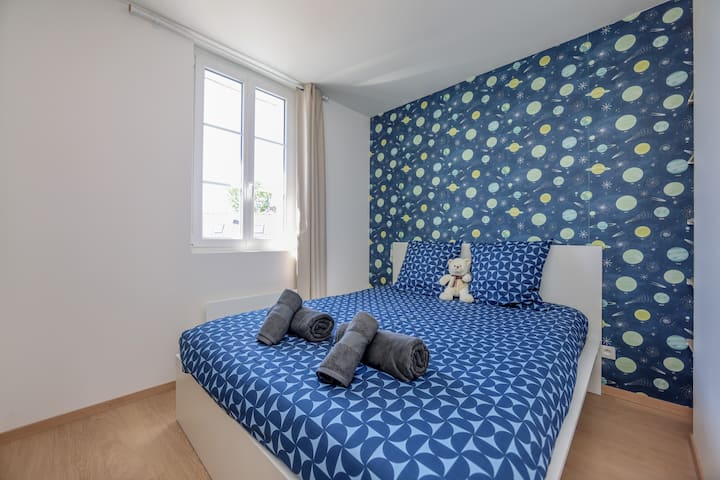 Pozdrav! Mi smo obitelj od 6 članova, uključujući 4 djece u dobi od 7 do 14 godina. Otvaramo vrata svoje kuće koja je u potpunosti renovirana 2024. godine. Moj suprug živi u Merlimontu već 40 godina, a mene je zarazio prije više od 20 godina. Rado ćemo podijeliti svoje favorite: jedrenje, šetnje dinama, restoran „Sur Mer” kuhara Alexandre Gauthiera, Bagatelle i mnoge druge. Vidimo se uskoro!