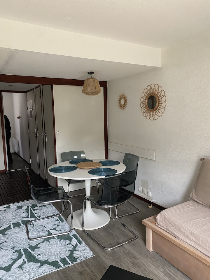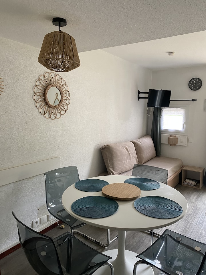 Vaš smještaj za odmor uključuje 1 dnevni boravak, 1 kuhinju, 1 spavaću sobu, 1 kupaonicu, 1 zaseban WC i 1 parkirno mjesto. Prednosti vašeg smještaja: apartman uz more, u blizini trgovina i aktivnosti, okrenut prema jugozapadu. Površina 27 m2. Lokacija: Smještaj: DRC Pristup plaži ili padinama: Izravan pristup moru (morska obala) Grad ili središte sela: Središte sela Udaljenost od mora: između 100 i 500 Udaljenost od trgovine: između 100 m i 500 m Udaljenost od aktivnosti: između 100 m i 500 m Broj razina smještaja: Prizemlje Sastav dnevnog boravka: Banket krevet Dnevni boravak: 1 Soba: 1 Standardni kauč: Da Sjedala na kauču: 4 Stolić: Da Hrana: Vrsta kuhinje: Američka Sastav spavaćih soba: Soba 1: Bračni krevet: 1