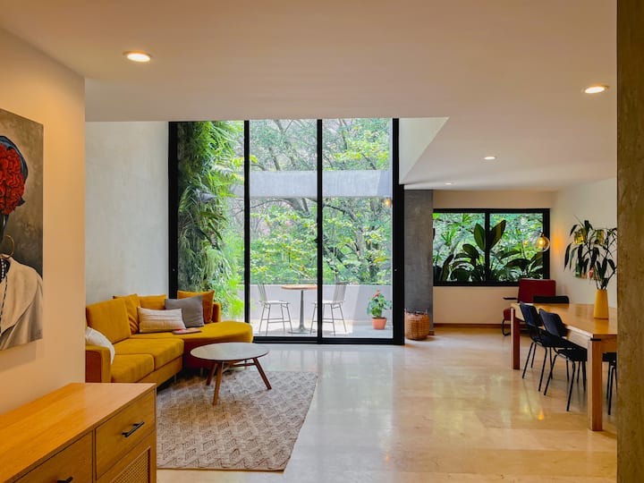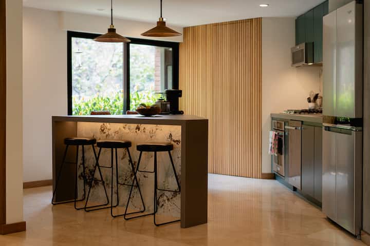 Otkrijte svoje privatno utočište u srcu četvrti El Poblado. Ovaj luksuzni stan „jungalow” nudi miran odmor usred živahne gastronomske i noćne scene grada.