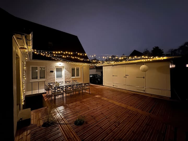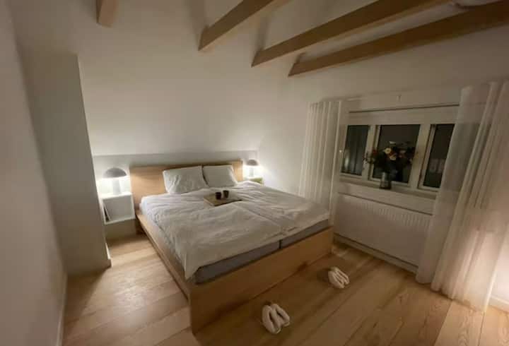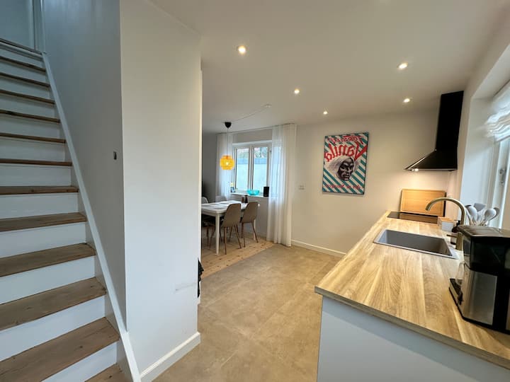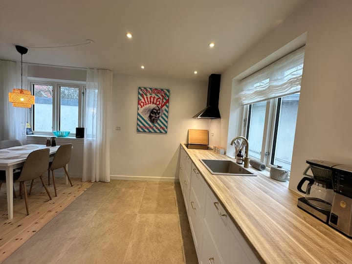 Odsjednite u središtu grada s 🌳 obližnjim gradskim životom 🏙️ i prirodom. Smještaj se nalazi na pješačkoj udaljenosti od centra grada i udaljen je samo 5 minuta vožnje biciklom🚴. U blizini ćete pronaći slikovita područja, igralište, skate park i rijeku Odense.
