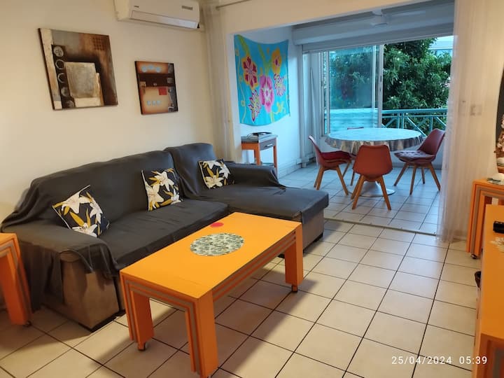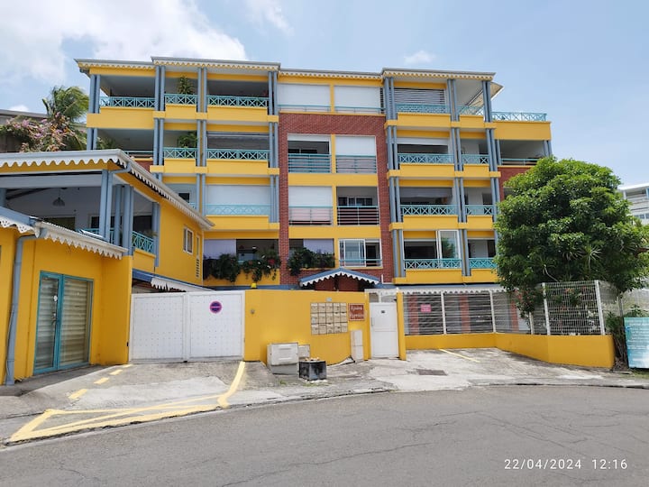 Smještaj je površine 52 m2, potpuno renoviran, nalazi se na 1. katu rezidencije Raymondière, 2 koraka od prekrasne plaže Anse Mitan, u Trois Ilets, u mirnom i elegantnom okruženju.
