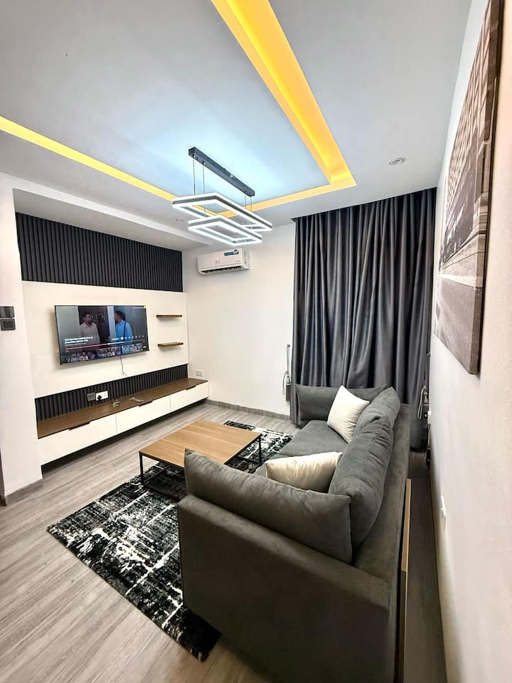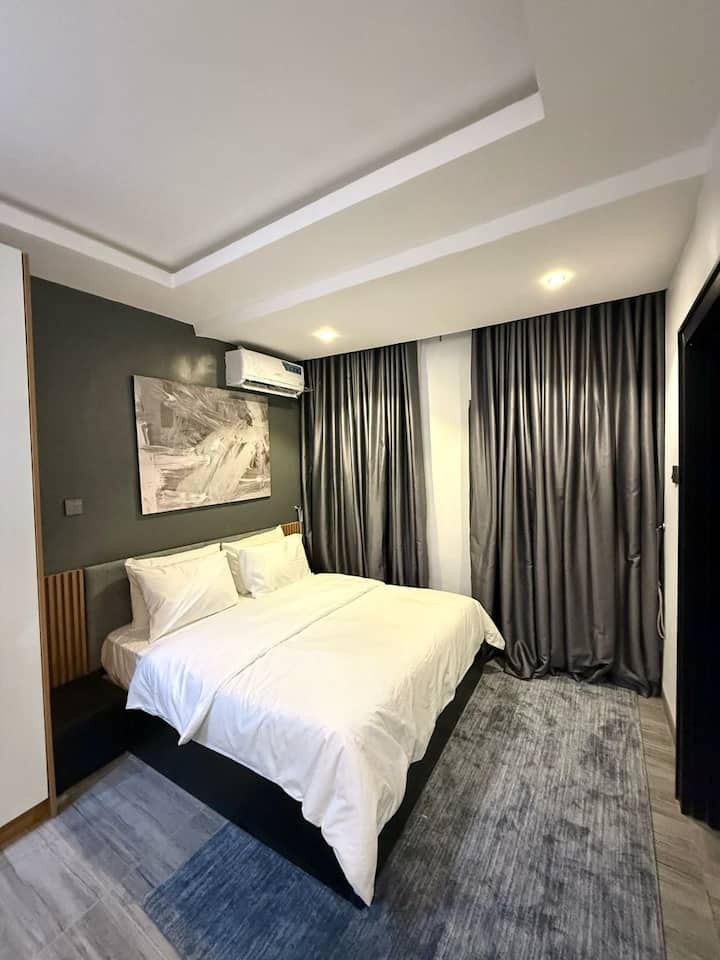 Moderan stan s 1 spavaćom sobom u četvrti Wuse 2 | Brzi Wi-Fi i struja 0 – 24