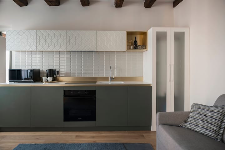 U srcu Dorsodora, jednog od najautentičnijih sestierija u Veneciji, Palazzo dei Guardiani nudi 30 elegantnih i modernih stanova, s visokom udobnošću, dizalom, profinjenim privatnim vrtom i conciergeom spremnim da vas dočekaju svaki dan od 8:30 do 23:00. Suvremeni dizajn stapa se s venecijanskim šarmom za ugodan boravak, na pješačkoj udaljenosti od glavnih atrakcija.