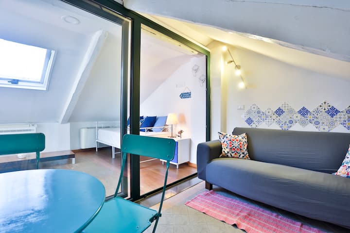Prostrana kuća na krovu na više razina, smještena na trećem katu zgrade koja NIJE opremljena liftom. Može primiti 6 osoba s velikom udobnošću, zahvaljujući dvije kupaonice, tri dnevna boravka i terasi na kojoj se možete opustiti. Smješten 250 metara od katedrale Duomo i nekoliko koraka od Lungomare Triestea, središta noćnog života grada za brojne klubove, barove i pizzerije. Pet minuta hoda udaljena je i plaža Santa Teresa s koje možete uživati u pogledu na cijeli zaljev.