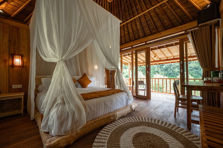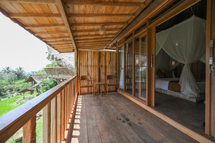 Šarmantna drvena kuća s pogledom na rižu koji oduzima dah