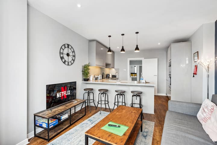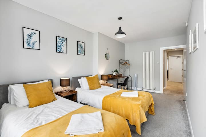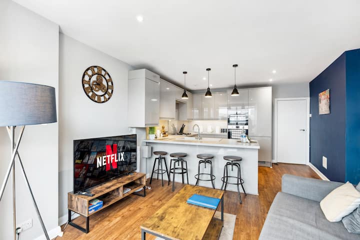 Susjedni dupleksi u Brighton Centralu – nude dva elegantna, samostalna stana (za 8 – 10 gostiju, 4 spavaće sobe, 2 kuhinje). Idealno za obitelji, vjenčanja, ugovaratelje radova ili poslovne smještaje, nude privatne prostore, a istovremeno održavaju vašu grupu na okupu. Koraci od mola Brighton, Lanesa i obale, s restoranima, noćnim životom i prijevozom u blizini, ovi dupleksi nude privatnost i blizinu. Uživajte u najboljem od živahnog centra Brightona uz ovo moderno rješenje za smještaj.
