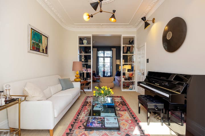 Ova fantastična četverokatna kuća u Chelseaju, smještena u neposrednoj blizini užurbane ulice Fulham Road, nudi rijetku kombinaciju profinjenog stila života, suvremenih udobnosti i šarma prirode. Ovaj smještaj idealan je za obitelji ili grupe ljudi koji žele boraviti u Londonu. Ima dva ulaza, jedan kroz šetnicu Netherton Grove, a drugi kroz parkiralište za jedan automobil. Nalazi se na izvrsnoj lokaciji u blizini popularnih restorana Brinkley's i The Hollywood Arms te groblja Brompton Cemetery.