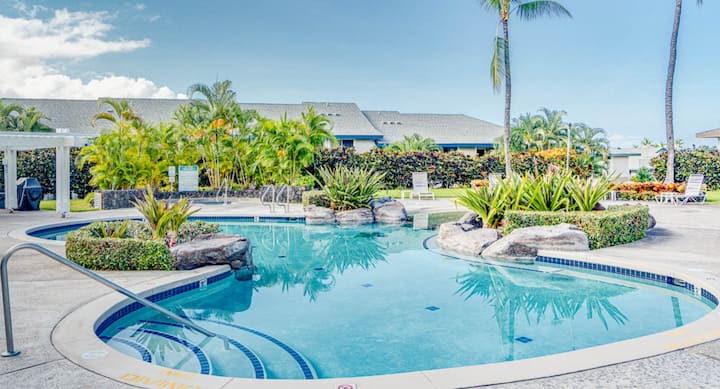 Uživajte u Kona u Alii Laniju! Stan s 2 spavaće sobe i 2 kupaonice na Alii Driveu s lanai terasom, bazenima, masažnim kadama i roštiljima – nekoliko minuta do plaža, restorana i grada.